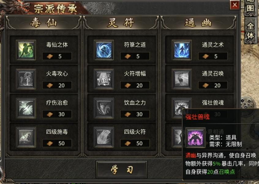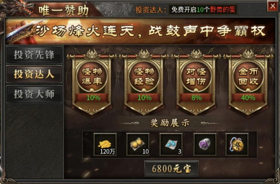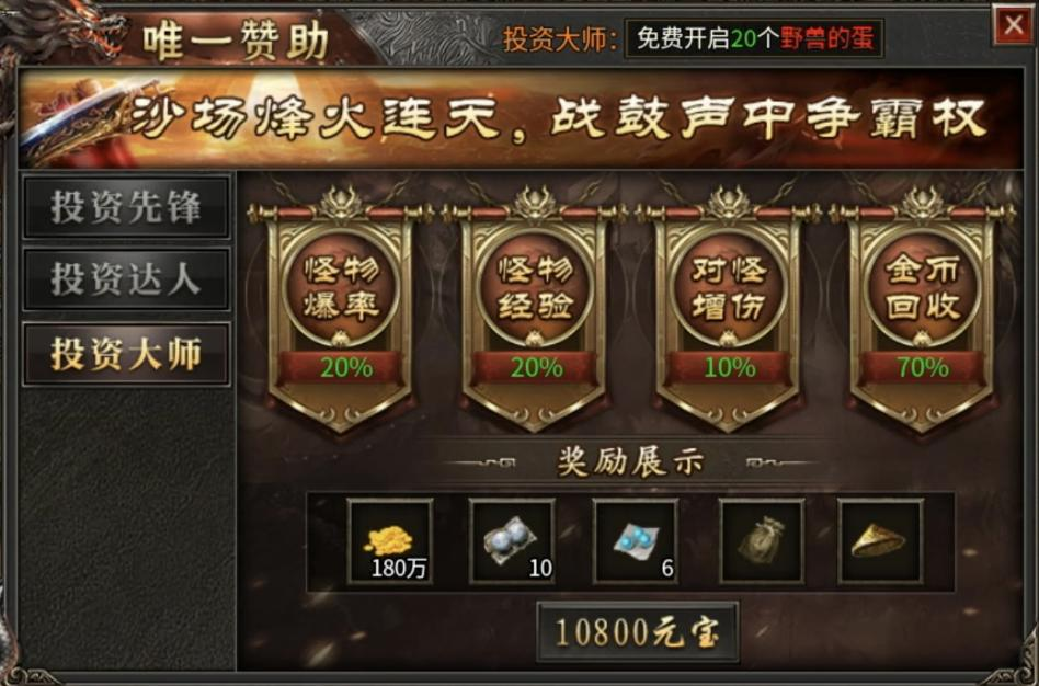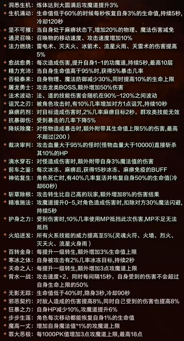 本服作为180版三职业复古传奇,区别于其它180传奇的是每个职业多了三流派,再配合天命、天赋系统,可以让玩家在游戏中体验不一样的乐趣! · 氪金介绍 唯一赞助分为投资先锋(5800元宝)、投资达人(6800元宝)、投资大师(10800元宝)三档,其中投资先锋赠送永久随机石和物品解绑卡、投资达人赠送永久回城石和10个野兽的蛋、40格背包和28个野兽的蛋。这三个赞助一起赠送10个六合引气丸,可助力玩家快速练体 日享福利需28元直购,赠送大量货币、材料及祭坛特权卡(当日进入灵魂祭坛不收取费用)及20次瞬间移动 周卡福利则需要6800元宝开启,立即赠送1个超级祝福油(珍惜物品,运9必备!),每日赠送2个大珠子(每个可收集150万经验)和幻10直飞卡(升级必备!) 循环福利,每充值30元即可领取一枚天命石(逆天改命必备!),当逆天改命达25次后必出红色天命! · 资源分配 打怪能爆出不同装备,可收集为图鉴(需手动提交,装备为图鉴所需会有红点提示,激活则需要花费大量金币),增加少量属性(积少成多!) 野兽商店中消耗野兽碎片可兑换各种稀有物品(建议前期优先兑换大、小经验珠),回收野兽可获得不同碎片(其中红色野兽可回收成50个碎片) 玉佩进阶为前中最为重要的打怪增伤手段,增加大量生命和对怪伤害(升级100%成功),且满级后额外获得药品恢复效果加20% 身上八件首饰消耗金币和紫水晶能进行装备强化,每次强化后下次会降低成功概率,每件装备可强化至7星,但强化4星后强化失败有几率会掉星,全身装备强化至4、5、6、7星额外增加百分比攻魔道和血量属性 宠物融合,仅红色野兽可进行融合,一主一辅,只有20%几率成功,成功后辅野兽属性转移到主野兽上(3属性野兽则需要2个2属性野兽进行融合),失败4次后第5次必定成功(可以进行卡次数升级!) · 流派选择 道士建议选择通幽,起步就能学习第一个技能,召唤3个宝宝协同作战,学习完前两个即起步4个宝宝,刷怪更为丝滑! 法师建议选择炽焰,四级火墙仅需30书页就可开启,再配合终极技能流星火雨,不管是刷怪还是PK都轻而易举(高氪大法建议1~2个选择寒霜,本来法师刷怪升级就快,再配合终极技能冰霜群雨:对等级低于自己玩家造成2秒冰冻效果,攻沙时简直是神技!) 战士联系选择血煞,野蛮后2秒麻痹再配合30%几率的双倍烈火战、法、道都顶不住,简直就是为PK而生! · 天命选择 人物等级达标即可解锁天命系统,分为:白色、绿色、粉色、红色4种天命,前期以怪物猎人:增加对怪伤害、同心协力:增加怪物掉落、团结一心:增加打怪经验为主,后期再更换成生机涌动:生命值低于60%每秒恢复5%血量持续5秒、寒冰之体:受击时2%冰冻敌人2秒等功能性天命 · 天赋选择 三职业天赋都一样,刷怪建议选择:驱魔之力、天命、血性狂暴、会心一击、灵动、圣佑、饮血之体、征伐之力;PK建议选择:钢剑、锁子甲、血性狂暴、灵域之光、破魔手套、弱点击破、铜墙铁壁、征伐之力 · 隐藏地图 白日门向导处进入秘密通道,在右上方红色方框中进入香山古墓一、二、三层(没有多少人知道,前期刷怪独享必备!)